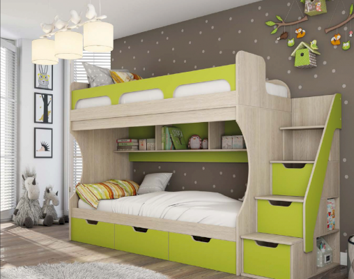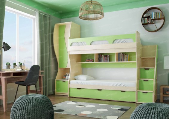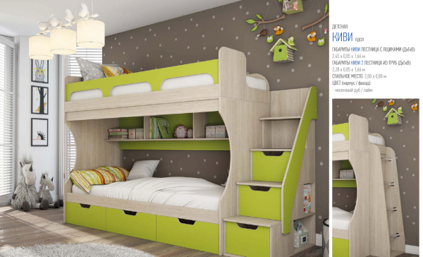 Кровать 2-х ярусная с лестницей из ящиков Киви модуль №1 (Террикон)