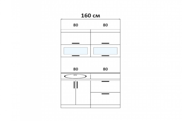 Высота верхних шкафов: 718 мм