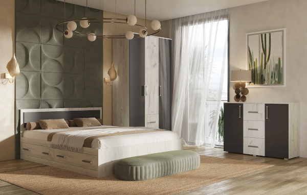 Цвет фасада: Дуб Крафт Белый/Графит