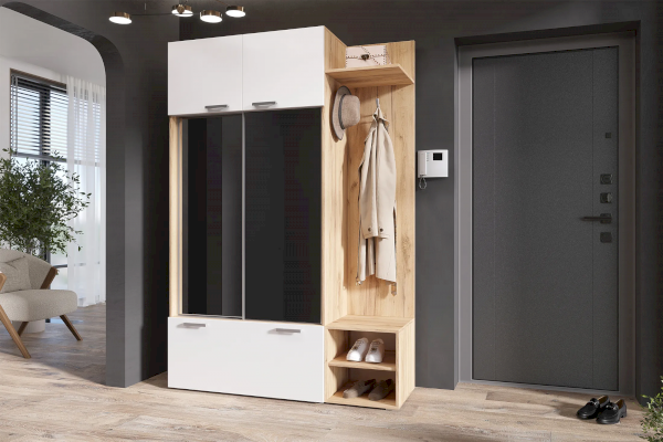 Прихожая Стелла (Миф) – товар доступен к покупке в интернет-магазине krasnoyarskiy-dommebeli.ru. Цена – 19 498 руб. без учета доставки. Стоимость дополнительных услуг и сроки получения мебели уточняйте у менеджера. Возможен безналичный расчет, оплата по карте на сайте.