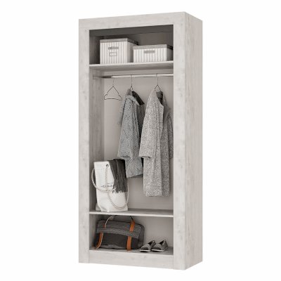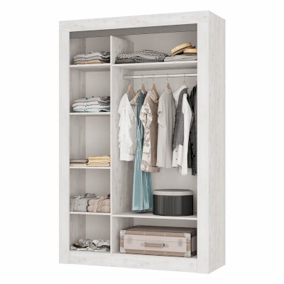 • широкая кровать и коллекция модулей для хранения одежды, аксессуаров и постельных принадлежностей.