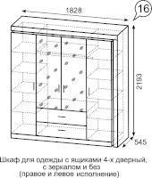 Шкаф для одежды с ящиками 4-х дверный без зеркал №16